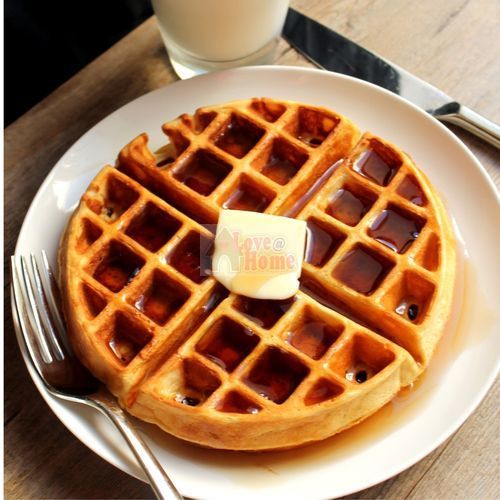 製作方法:一杯鬆餅粉(約150g)、一顆蛋、一杯牛奶(250ml),調和成麵糊,大約可做15個圓形鬆餅。