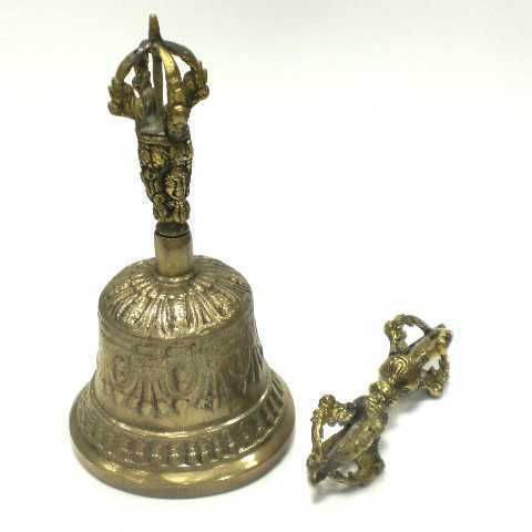 金剛鈴是密宗的法器之一,別名金鈴。是為了激勵眾生精進和喚起佛和菩薩的驚覺時所搖的鈴。這是一種修行時所用的法器。代表佛的善巧、方便,以及大慈大悲。它也有「覺醒者」之意,鈴聲能讓有情眾生在無明的睡夢中蘇醒過來。眾生因無明執著而致輪回不已,貪嗔癡三毒由是而生,故用鈴聲警覺之。 金剛杵又叫做寶杵、降魔杵等。原為古代印度之武器。由於質地堅固,能擊破各種物質,故稱金剛杵。在佛教中象徵著所向無敵、無堅不摧的智慧和真如佛性,可以斷除各種煩惱、摧毀形形色色障礙修道的惡魔,所以也成為佛弟子及修行者常攜行的物品。