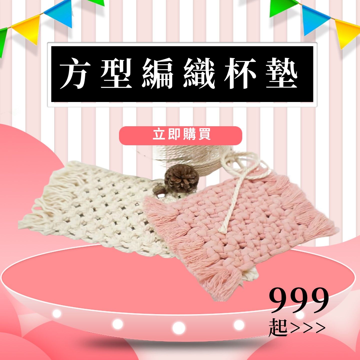 🌱Macrame編織杯墊,圓形造型搭配流蘇裝飾,為您的家居增添自然與風情。