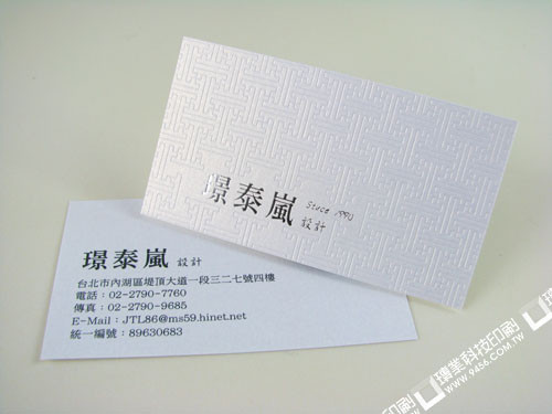 用壓紋的方式加簡單的燙銀,就能呈現出簡單素雅又有質感的名片。