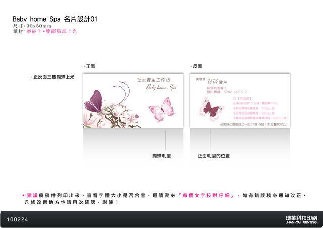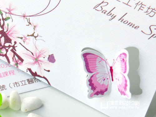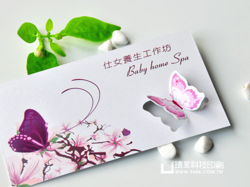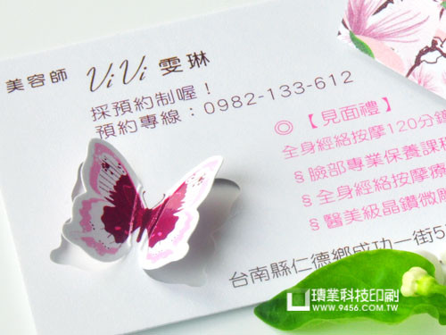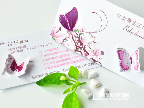 因為主角是蝴蝶,在名片設計上特別有花巧思在上面。