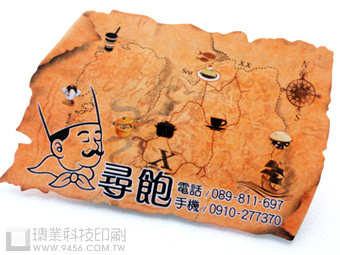 一般傳統名片都是「長方型」!「造型(軋型)名片」顛覆了傳統名片「方正」的尺寸,讓名片有了特殊的造型。例如:在名片四周打「圓角」、將名片做成「地圖」、「包包」、「便當盒」等套特殊形狀,顯示不同的效果! *以下為範例圖樣