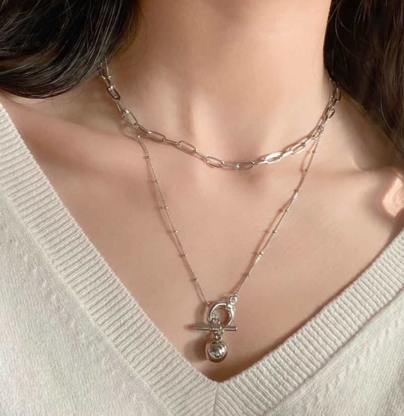 簡約風格的球型扣環項鍊(金.銀)ball toggle necklace