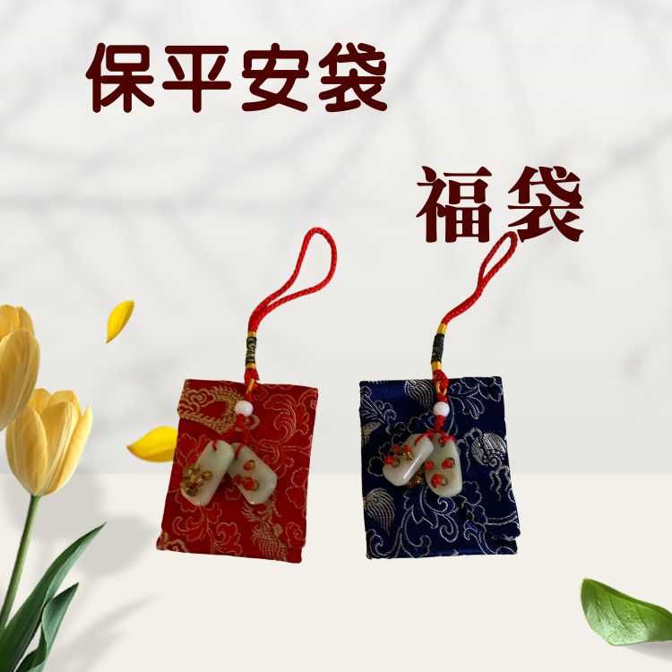 台灣製福袋,福袋上掛著一雙玉製的鞋子,