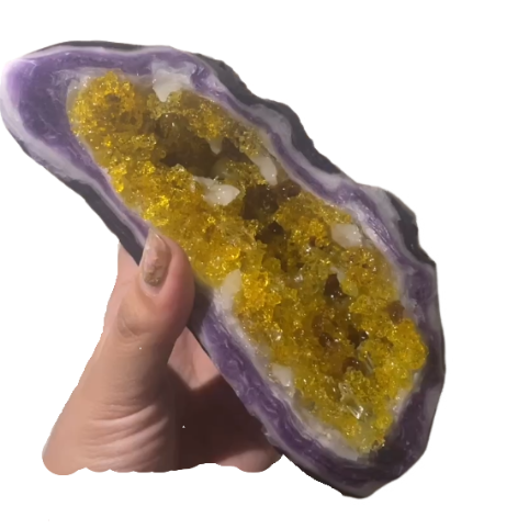 水晶洞蠟蠋是獨特的手工藝品,融合了技藝精湛的手工製作與天然水晶的神秘美感。每一件都由藝術家精心製作,展現水晶洞的奇幻景象,為空間帶來美感和能量。作為禮物,象徵著愛與祝福,將美麗和神秘帶入人們的生活。