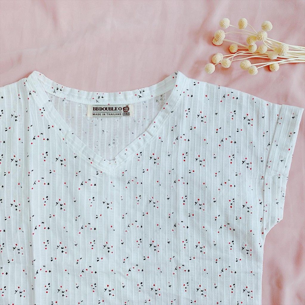O’Shorty🍃 白底碎花直條伉紋短袖棉麻上衣