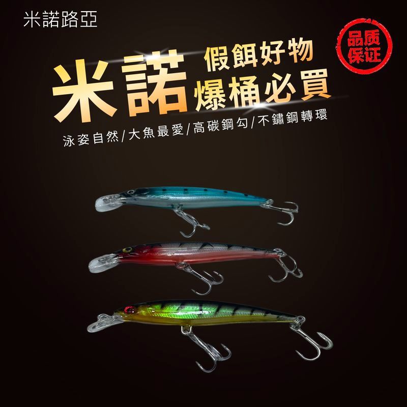 高品質小米諾 路亞硬餌 11CM / 7g 短舌板設計 可下潛至2M-2.5M中泳層主動搜尋掠食性魚類 瘋釣魚為您精選的沉水米諾假餌,泳姿漂亮,擺動幅度穩定漂亮