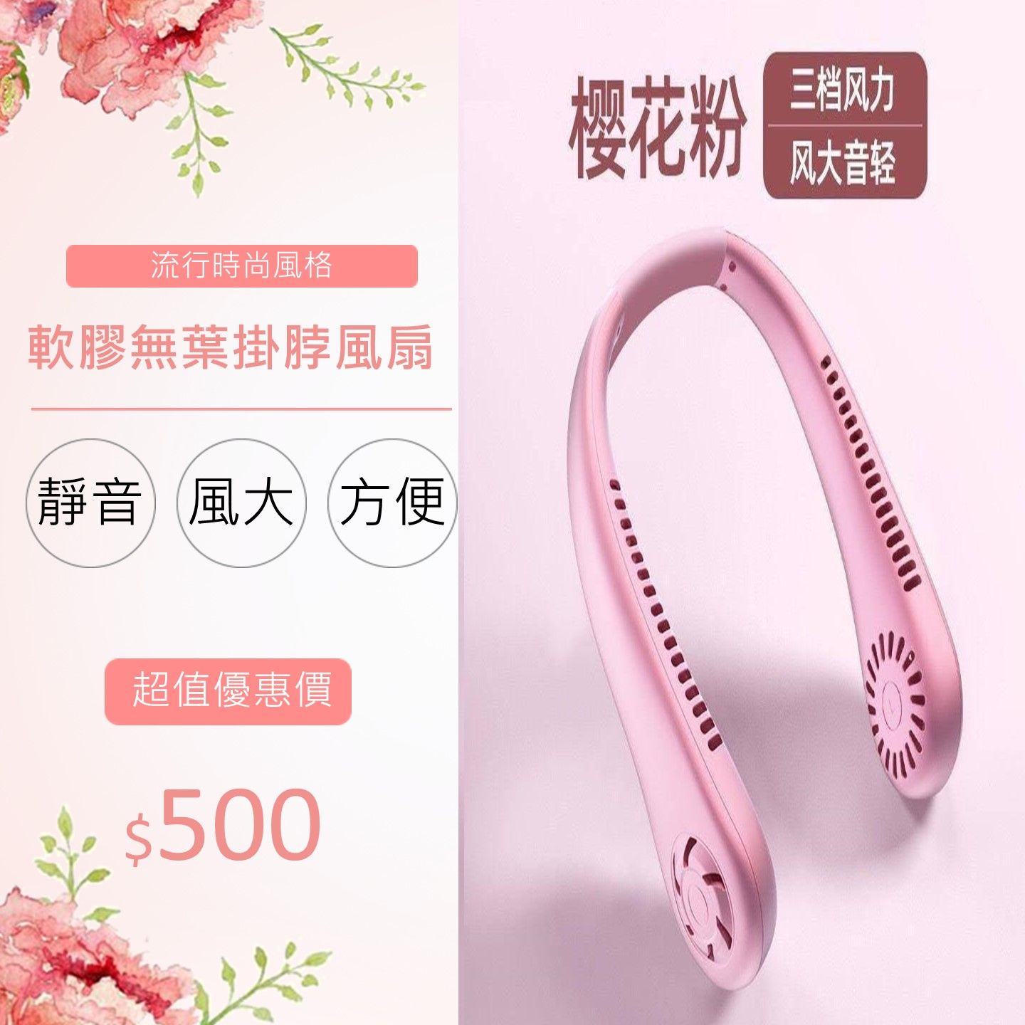 軟膠無葉掛脖風扇